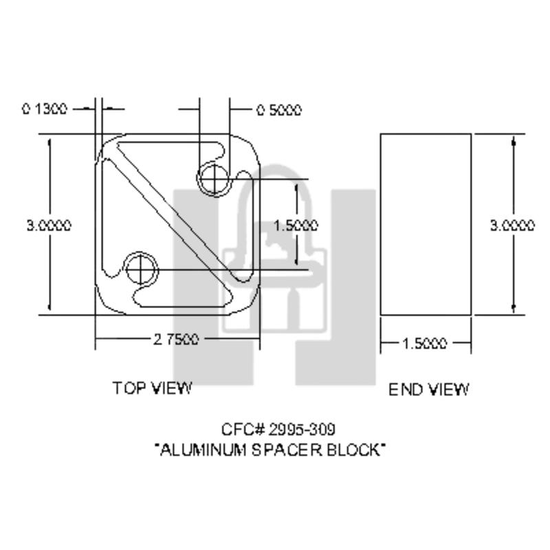 Aluminum spacer block used to space the fertilizer knife. Replaces Yetter no. 2995-309. Pack of 1