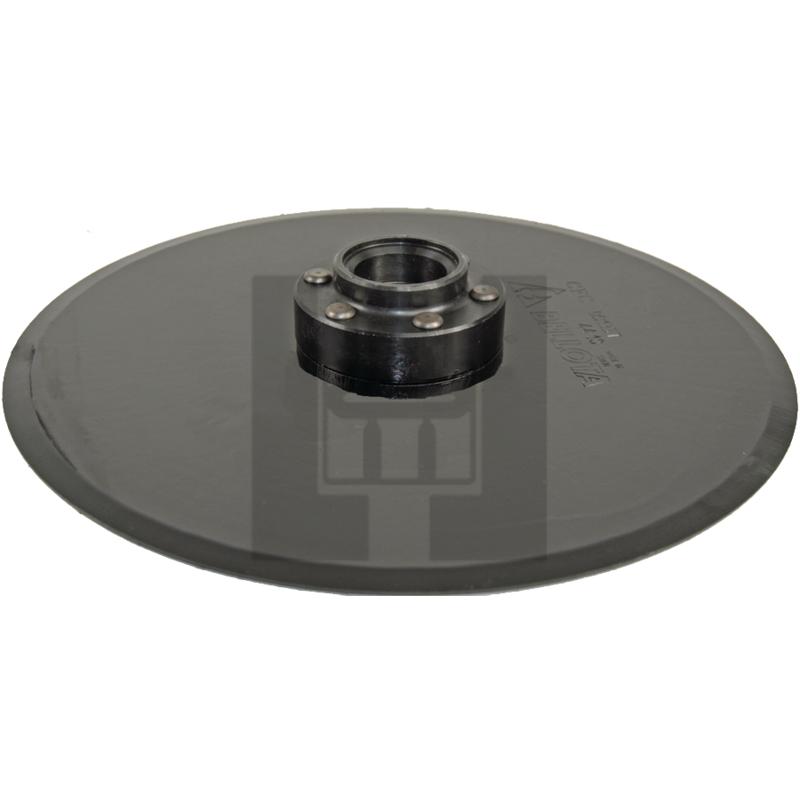 13-1/2" JD opener assembly for double disc fertilizer units mounted to the face of the row unit, complete with dust cap. (Has heavy cast hub.). Pack of 1