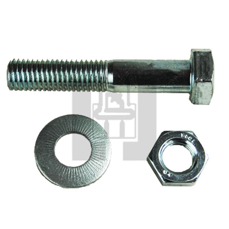 Hardware for Geringhoff snapping roll knife. Includes hex bolt, flat washer, and jam nut. 6 used per roll. Pack of 1