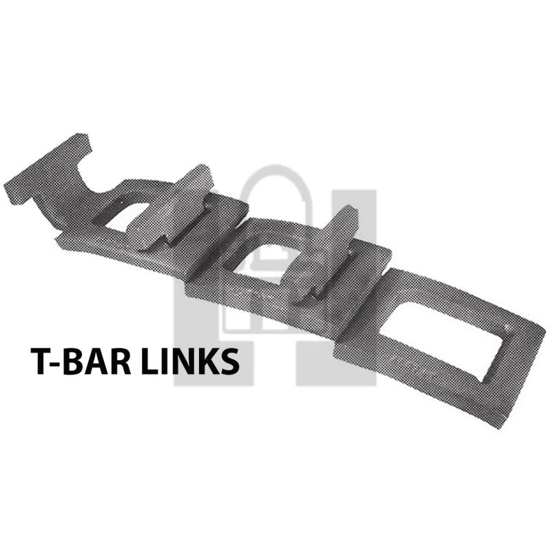 * Heavy duty links made of 5/16" heat treated high carbon steel.* Designed to be used on #67 sprockets.* Clean design prevents clogging or binding.* Longer wear life than steel or pintle chains due to 5/16" thickness.* Easily assembled or disassembled, twist link approximately 45 degrees.* Slat includes link welded onto each end.