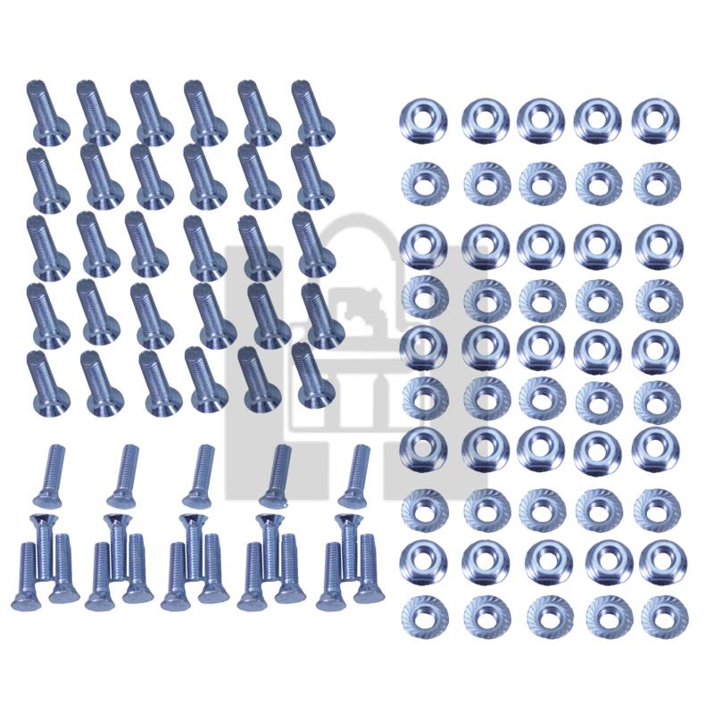 Package of plow bolts with serrated flange nuts. Zinc Plated, grade 5. Pack of 1