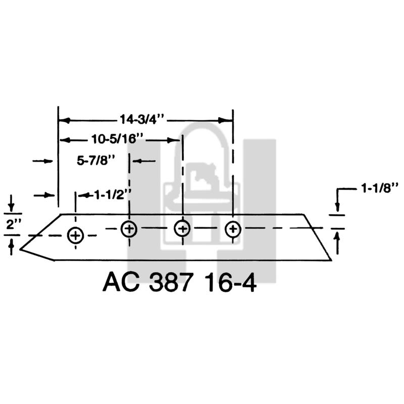 Plow share, 4 bolt, 18" to fit AC 387 bottoms. Has a dropped front hole.**Sold in cartons of 6 only. Made by Wiese Corporation in the USA. Pack of 1