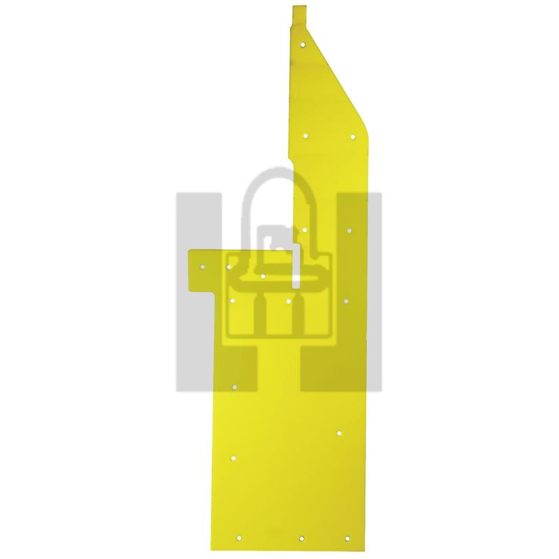 Right end shoe poly cover. Made of 3/8" thick yellow UHMW. Fits John Deere Flex Drapers 625FD, 630FD, 635FD, 640FD.Approximately 34 3/4" long. It is 11 5/8" at the widest part. Pack of 1
