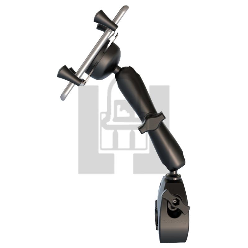The RAM-B-400-C-UN7U consists of the Tough-Claw rail clamp base, LONG length double socket arm and universal spring loaded X-Grip® cradle for phones. The spring loaded X-Grip® cradle expands and contracts, allowing for a perfect custom fit of your tablet. Included are easy access grip knobs for quick insertion and release of your handheld device. The Tough-Claw rail clamp base is the perfect mounting base for quick and easy tool-less installation and removal on round, square, odd shaped rails and bars. The Tough-Claw can be clamped on rails from 0.625" - 1.5" outer diameter. X-Grip® Cradle Dimensions Minimum Width = 1.875" (Minimum Height = 4.25") Maximum Width = 3.25" (Minimum Height = 2.25") Depth = 0.875". Pack of 1