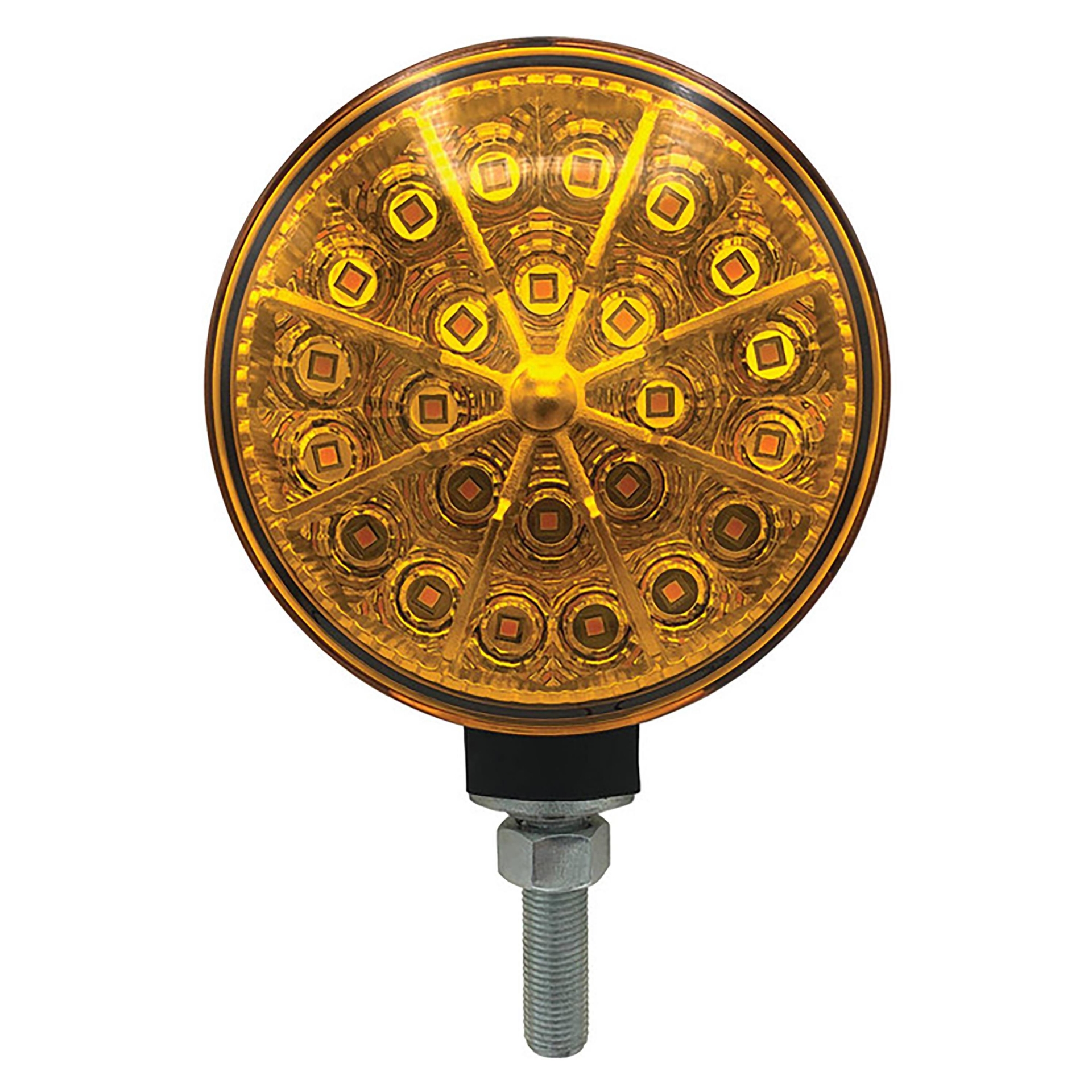 Double sided warning light. 1/2" mounting stud. Aluminum body. 25 bulbs per side. Can be used for turn signals, running lights, etc.
